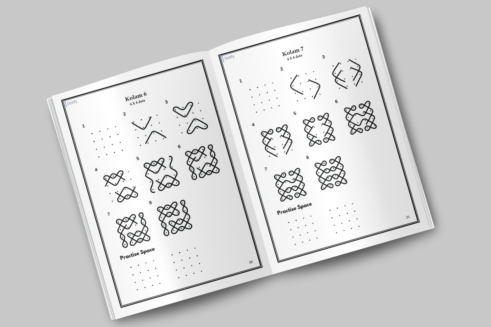 Guided Practice: No separate notebook needed! Every design features a dedicated "Practice Space" below it with the dots pre-printed for you.