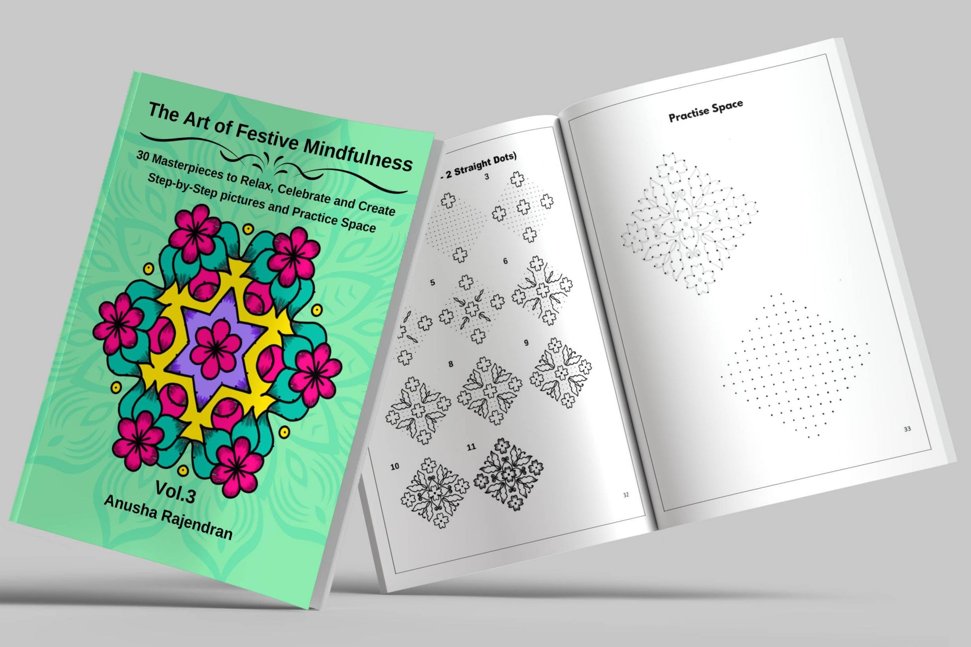 The "Gold Standard" of Rangoli Books Make every occasion unforgettable with The Art of Festive Mindfulness Complete Set (Volumes 1-4). This luxurious 4-book combo brings together the entire "Masterpiece" series by Anusha Rajendran, specifically curated for artists who want to create large, spectacular Kolams.